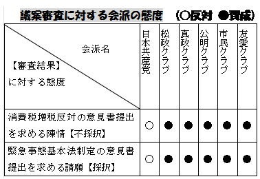 この陳情は増税に反対する国民の声を代表したものであり、財政再建の方向も示した積極的なものです。陳情は採択すべきです。議員諸氏の御賛同を期待し、討論を終わります。