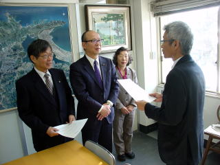2014年12月、松江市役所において予算要望についての回答を受け取る