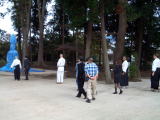磯山先生はこの日、他の道場の稽古予定があったようですが急遽予定を変更し、私どものためにおつきあいいただきました。また道場の皆様方には昼食準備など何かとお世話になりました。HPを借りて厚く御礼いたします。おかげさまで開祖ゆかりの合気神社を参拝できた上、道場及び合気道を見学させていただき、会員一同、合気道の奥深さと開祖の人となりを身近に知ることができ感激し、感謝いたしております。今後より多くの方々に合気の産屋としての合気神社の存在とそれを守る方々を紹介し、開祖の精神と技の原点を学んでいきたいと念じております。機会があれば、再度、訪問いたしますので、その節にはよろしくお願いいたします。