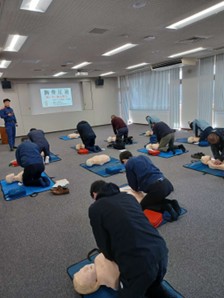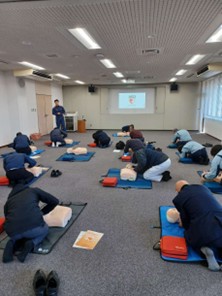 令和8年2月17日(火)松江市消防本部5階大会議室にて松江市危険物保安協会救命講習会を実施しました。会員の皆様には応急手当の重要性から胸骨圧迫、AEDの使用方法、異物除去について学んでいただきました。胸骨圧迫では「強く!早く!絶え間なく!」を意識して有効な胸骨圧迫に挑戦していただきました。