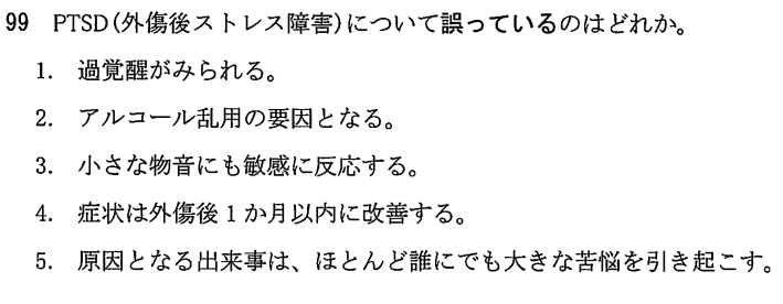 問4.心的外傷後ストレス障害(PTSD)で適切でないものはどれとどれか